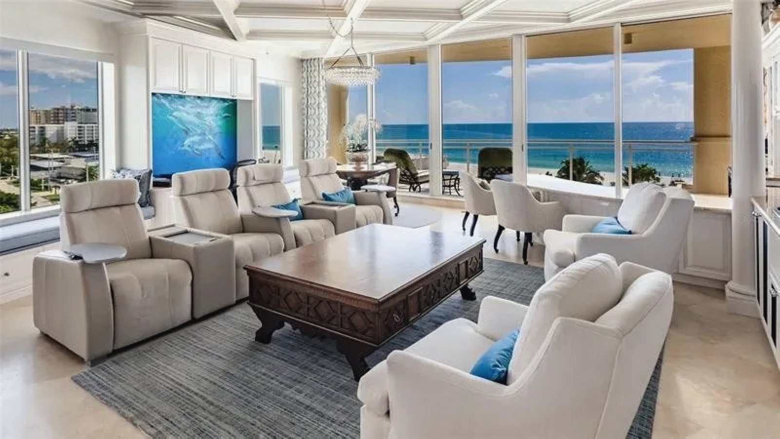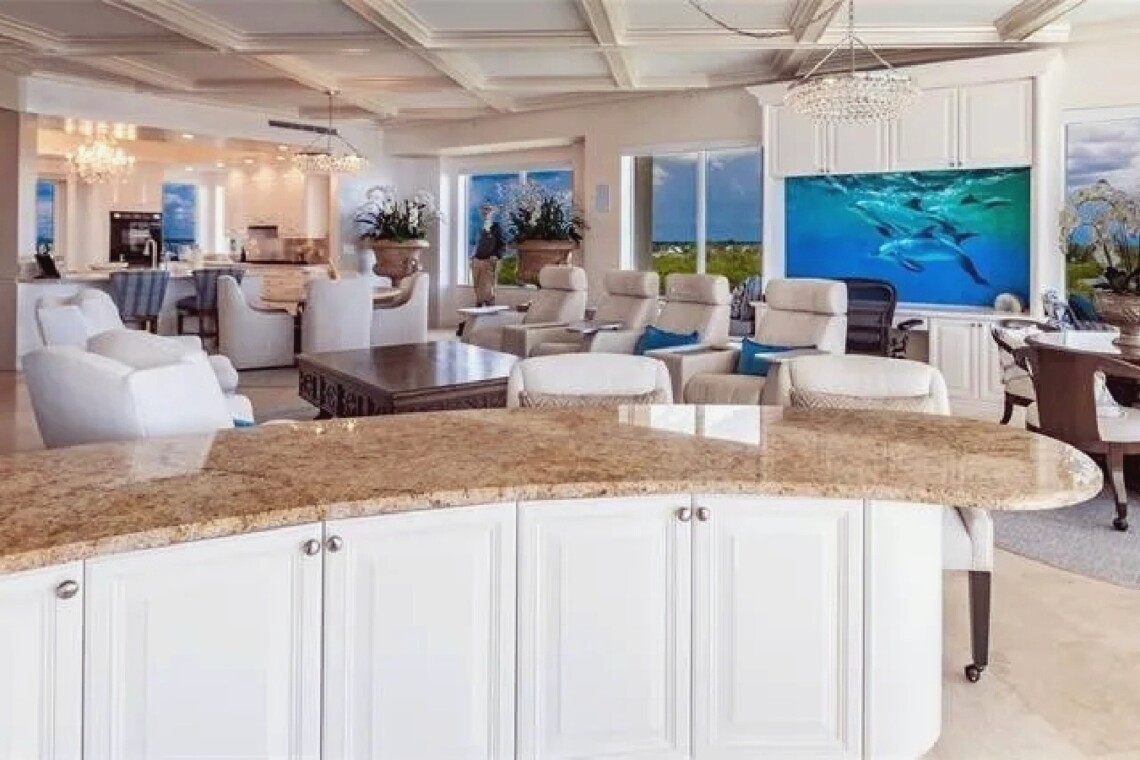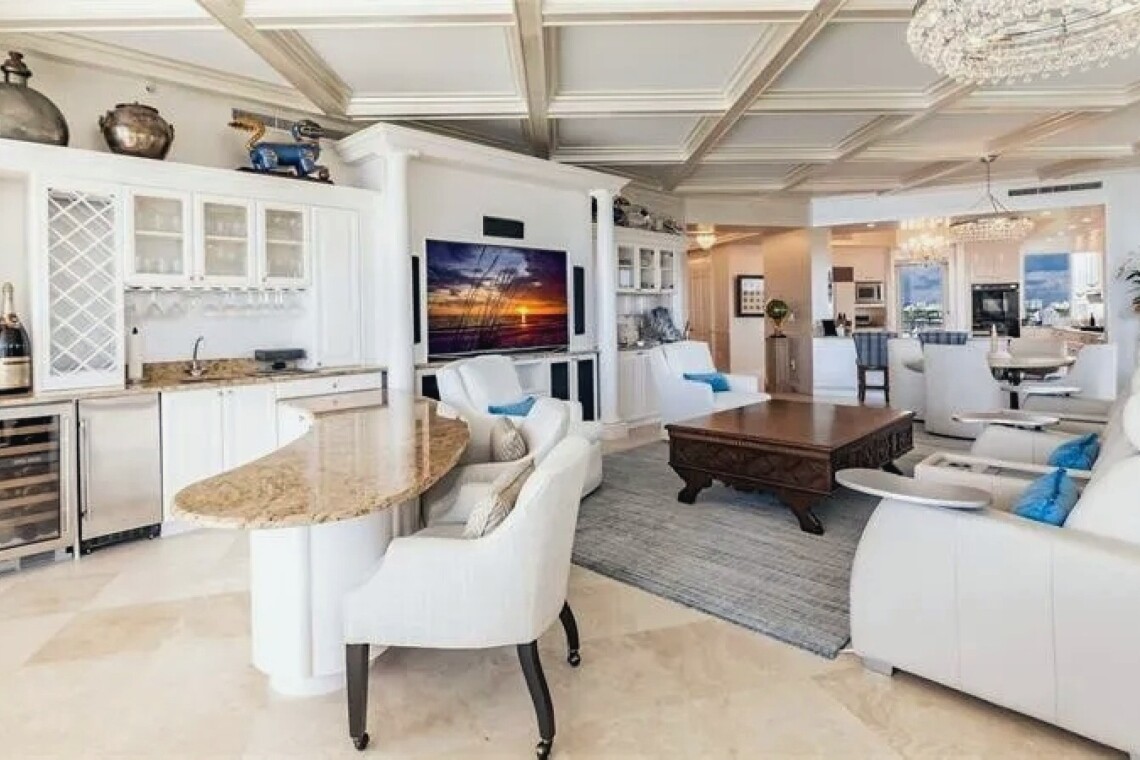 This expansive three-bedroom luxury apartment offers refined coastal living with spacious open-concept interiors, marble and travertine flooring, and sophisticated designer finishes throughout. Multiple living areas provide ample room for relaxation and entertaining, while the gourmet kitchen features premium appliances and stone countertops for an elevated culinary experience. The impressive primary suite includes a spa-inspired bathroom and a generous walk-in closet, complemented by high ceilings, crown molding, and smart home technology for modern comfort. Additional highlights include an in-unit elevator, wet bar, and energy-efficient windows. Perfect for guests seeking a stylish, comfortable, and luxurious coastal retreat in Sarasota.